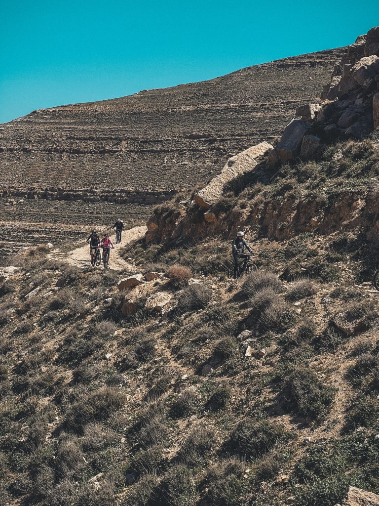 The ride is perfect for the intermediate to advanced-level cyclist. From Karak Castle, we will go mainly over off-roads, passing by farms leading us to the edge of Wadi al Hasaa. The mountainous area provides stunning panoramic views, including the Dead Sea’s salt pools on the far end. After a fair share of uphills and downhills, we will arrive at a major descent leading us to the Tannur Dam, next to the King’s Highway. From there, we will take the bus to Dana Village, where we will stay the night.